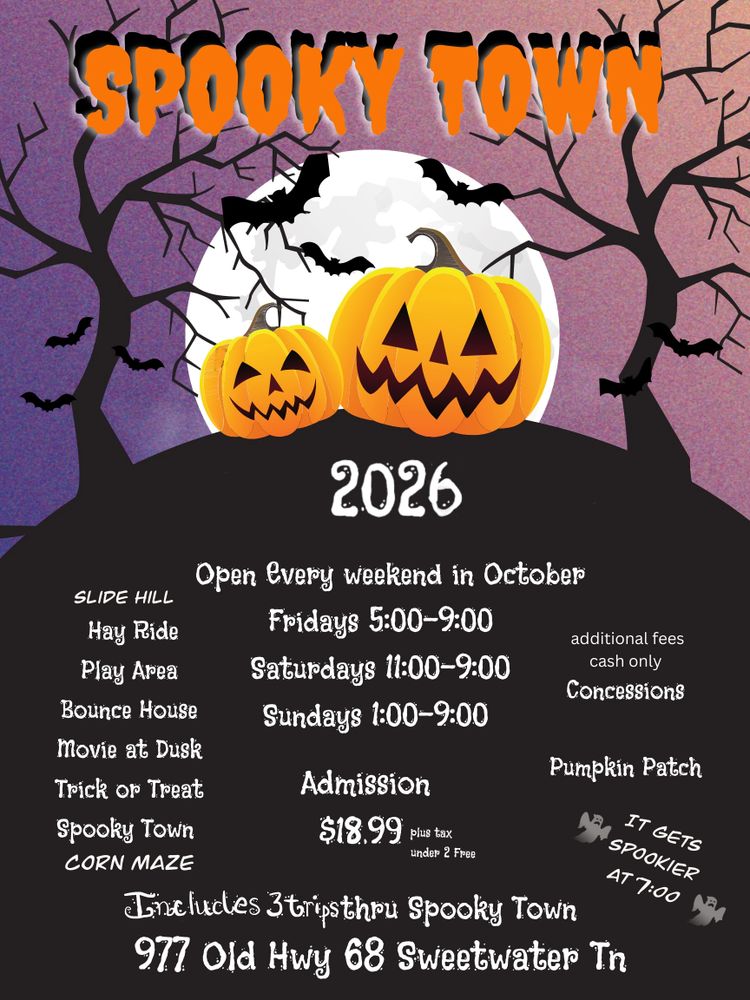 We're excited to announce more rooms in Spooky Town, the corn maze has expanded, and we now have a much larger Pumpkin Patch! We're adding more activities to the play area, and the hay ride is going to be SpOOkTacuLar. This year, you can enjoy your concessions in the newly opened lower barn, where the movie will play at dusk.